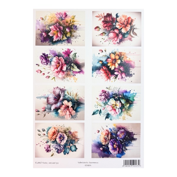 Kuva-arkki A4, CLA417 Kukat, vesiväritys