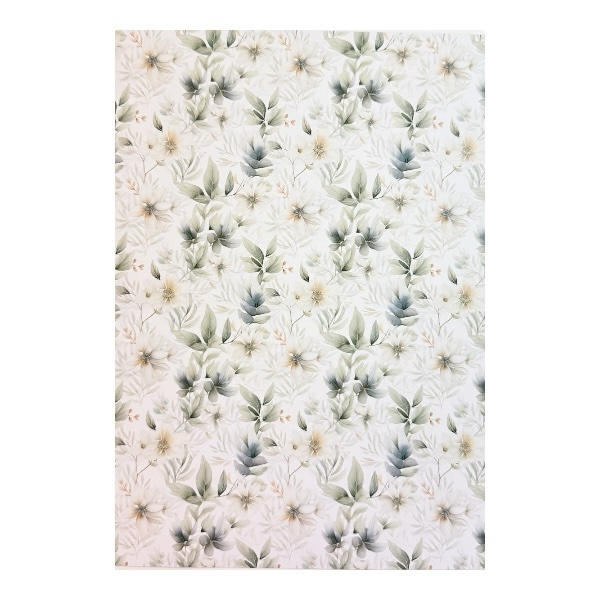 Kuviokartonki A4, 24 Kukat vihreä/ valkoinen, 5 arkkia