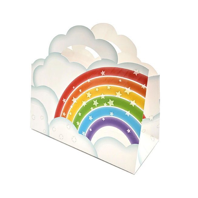 Hauska sateenkaari lahjakassi, jonka koko noin 22 x 25 x 11cm. Kassin pohjassa vahvike. Myydään kappaleittain.