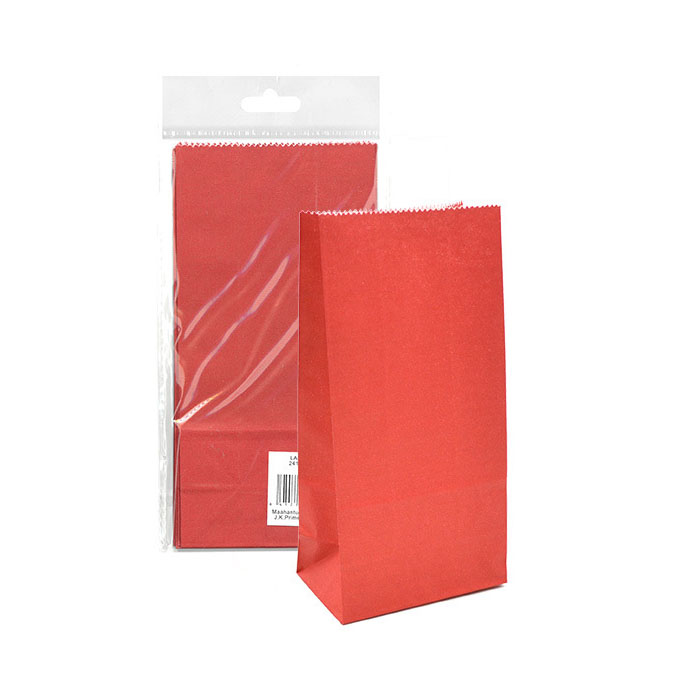 Punainen paperilahjapussi.  Pussin koko 9x18x5,5cm. Pakkauksessa 5kpl.