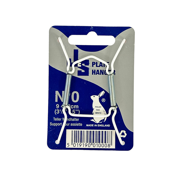 Mukautuva valkoinen metallivahvisteinen ripustin posliini- ja keramiikkalautasille. Sopii 9-13cm lautaselle.