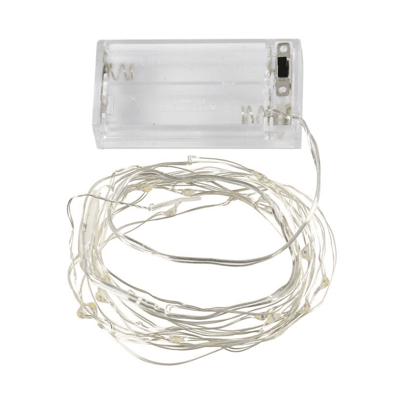 Paristokäyttöinen valoköynnös, jossa 100 pientä LED-lamppua. Pituus 5,95m. Köynnös on muovipäällysteistä, kierrettyä kuparilankaa, johon on liimattu pieniä diodeja. Vain sisäkäyttöön. Paristot 3 kpl AA 1,5V. (eivät sisälly pakkaukseen) Myös ajastustoiminto. Valo on lämmin valkoinen.