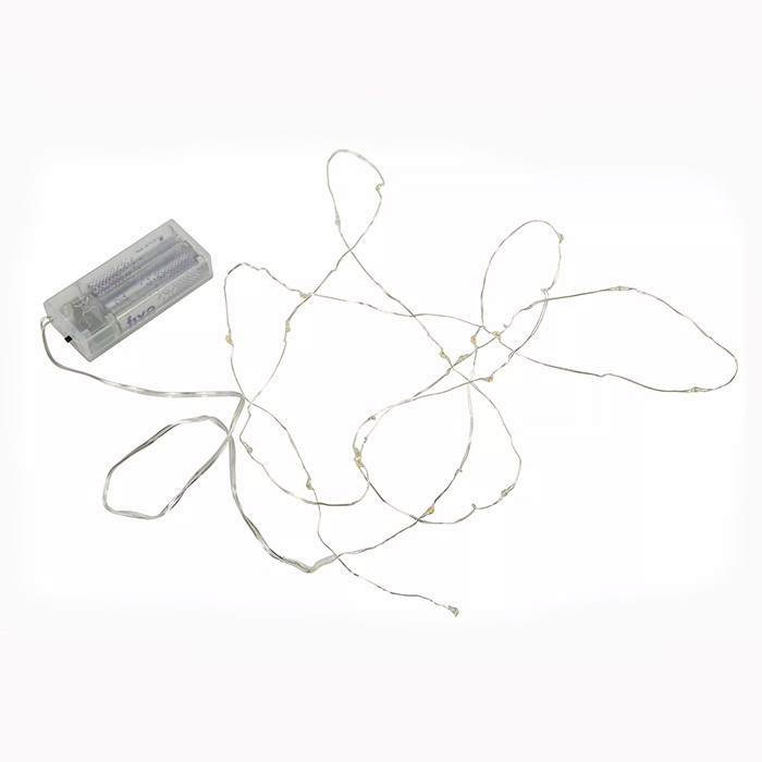 LED- Valosarja, jossa 20 lämmintä valkoista valoa ja ajastin toiminto. Valosarjan pituus on 2 metriä ja se toimii 2 xAA paristoilla. (ei sisälly pakkaukseen) Valosarja on tarkoitettu vain sisäkäyttöön.