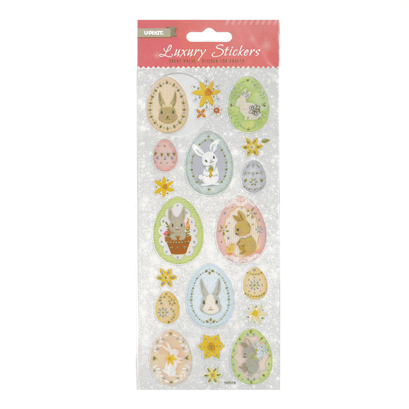 Pääsiäistarrat askarteluun ja koristeluun.  Arkin koko noin 10x23cm. Pakkauksessa 1 arkki.