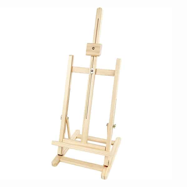 Kokoontaitettava puinen maalausteline, jossa säädettävä kannatin. Telineen paino 1,3kg. Maalauksen maksimi korkeus 56cm. Telineen mitat kokoontaitettuna 67×27,5×7 cm.