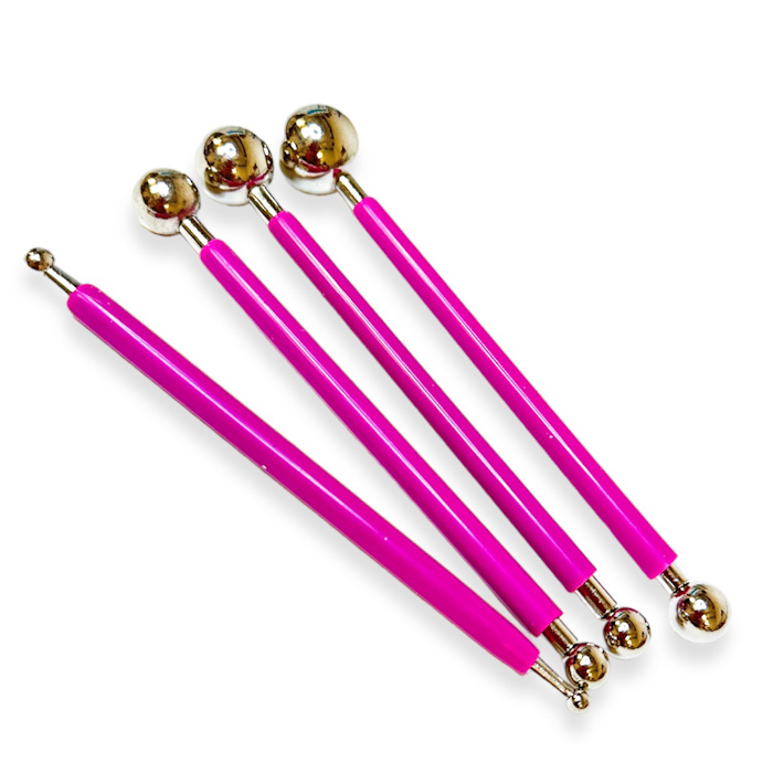 Laadukkaat kaksipäiset työvälineet esimerkiksi polymeerimassatöihin. Pakkaus sisältää 4kpl työvälineitä, joissa on erikokoisia pallopäitä.
