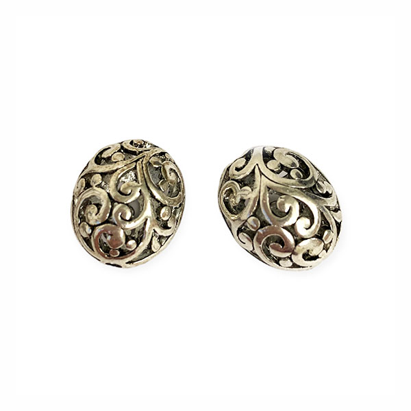 Metallinen koristehelmi 14x17mm, hopean värinen 2 kpl