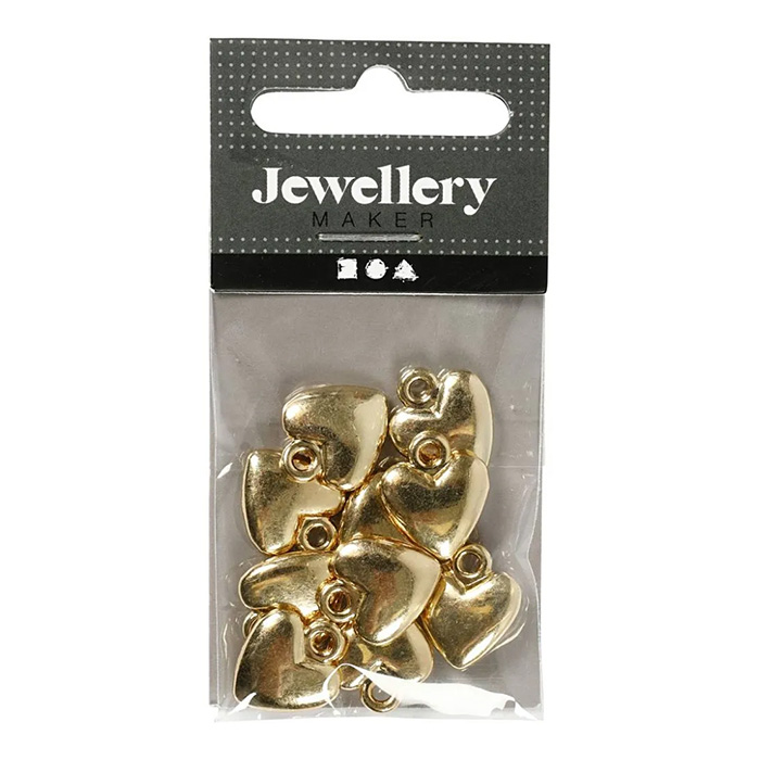 Kullanväriset metalliriipukset esimerkiksi koruaskarteluun. Riipuksen koko noin 13x15mm. Pakkauksessa 10 kpl riipuksia.