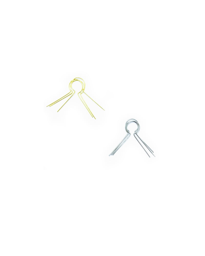 Metallinen ripustin kevyille koristeille kuten pääsiäismunille ja joulupalloille. Koristeet on helppo laittaa nauhaan roikkumaan ripustimen avulla. Pakkauksessa 10kpl.