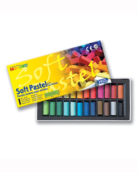 Mungyo kuivapastelli on keskilaatuinen pehmeä pastelli opiskelu- ja harjoituskäyttöön. Lajitelmassa 24 liitua.