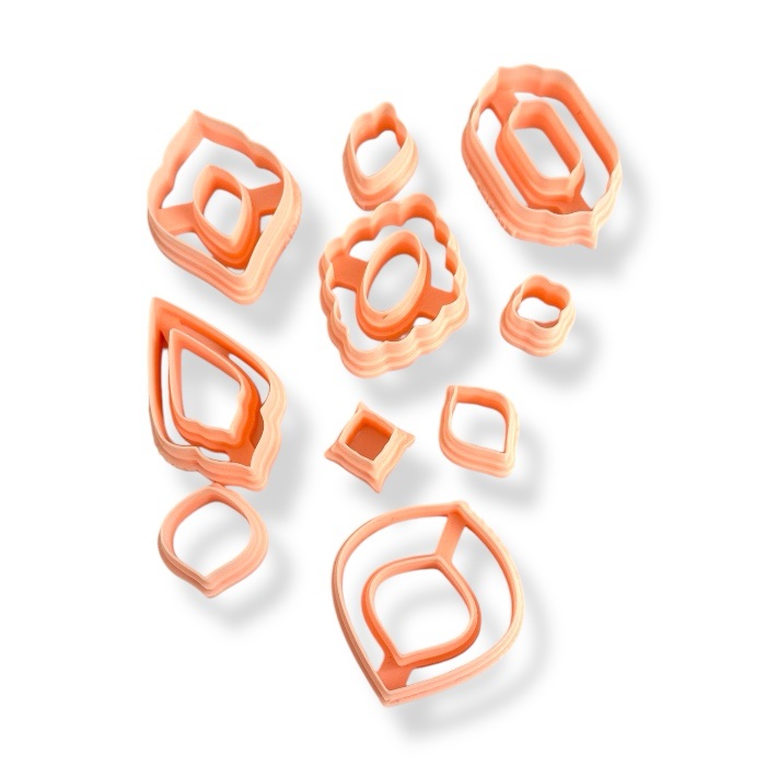 Muovinen muottilajitelma erilaisille massoille. Pakkauksessa yhteensä 10 erilaista muottia. Isoimman muotin koko noin 34x34mm.