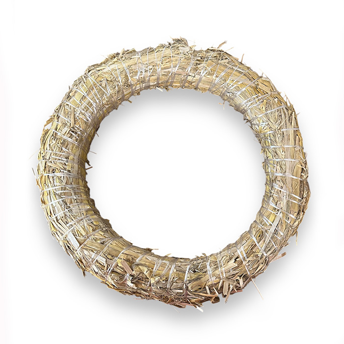 Olkikranssi, jonka voit koristella mieleiseksi ja sesonkiin sopivaksi esimerkiksi erilaisilla nauhoilla ja koristeilla. Kranssin halkaisija noin 25cm ja paksuus noin 3,5cm.