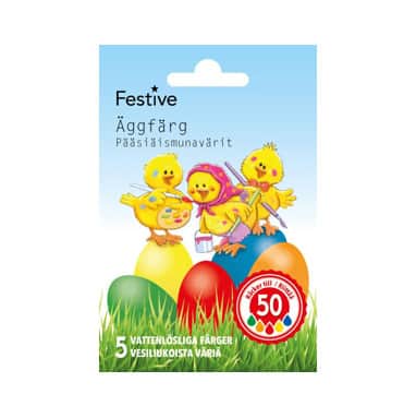 Lajitelma sisältää viisi vesiliukoista väriä pääsiäismunien maalaukseen; punainen, oranssi, sininen, keltainen ja vihreä.  Värit riittävät noin 50 munan värjäykseen.