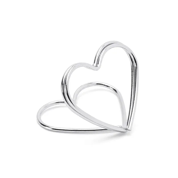 Sydämen muotoinen paikkakortin pidike. Paketti sisältää 10 pidikettä.