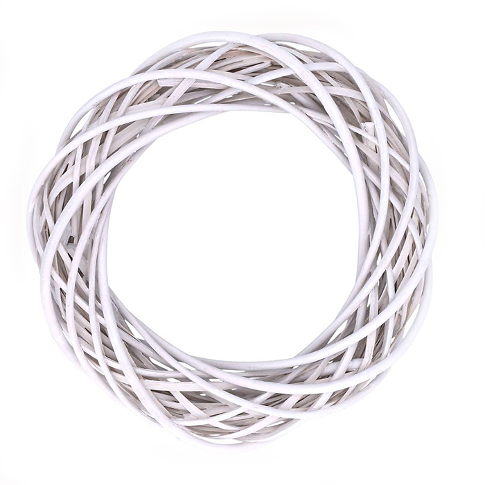 Valkoinen pajukranssi, jota voi koristella mieleisekseen ja eri sesonkeihin sopivaksi. Kranssin halkaisija noin 30cm ja paksuus noin 6,5cm. Kranssi on luonnonmateriaalia, joten sen mitat saattavat vaihdella.
