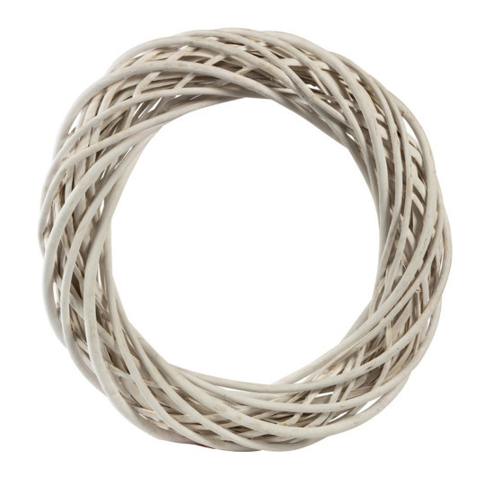 Valkoinen pajukranssi, jota voi koristella mieleisekseen ja eri sesonkeihin sopivaksi. Kranssin halkaisija noin 33cm ja paksuus noin 7cm. Kranssi on luonnonmateriaalia, joten sen mitat saattavat vaihdella.