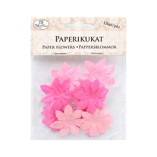 Paperikukkalajitelma askarteluun ja koristeluun. Kukan halkaisija on noin 4cm. Pakkauksessa 12 kpl.