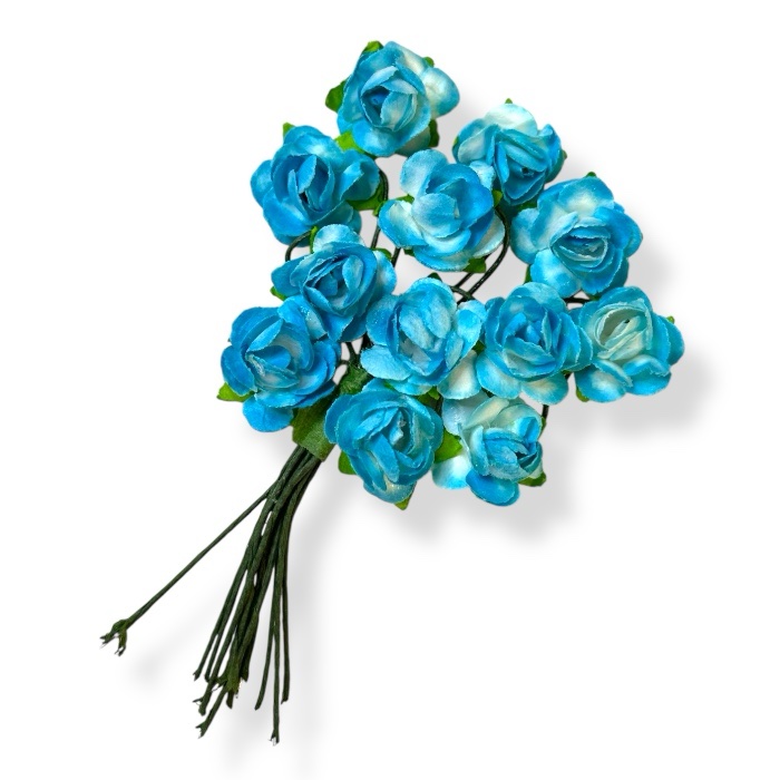 Paperiruusunippu, jossa 12 ruusua rautalangassa. Voit käyttää ruusut myös yksittäin. Yhden ruusun halkaisija on noin 1,5cm.