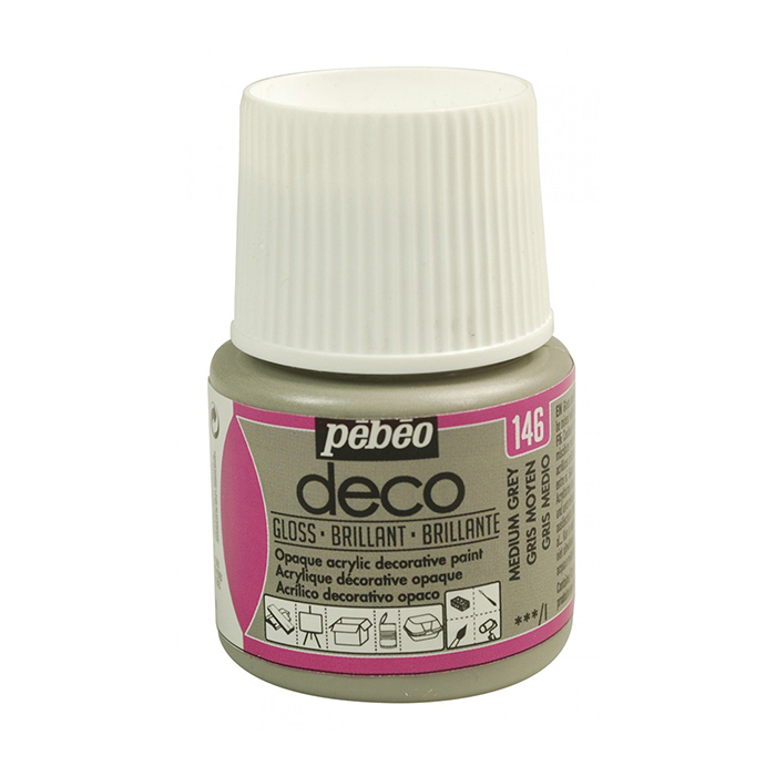 Pebeo Deco Gloss on suosittu ja monipuolinen kiiltävä akryylimaali kaikenlaiseen askarteluun. Käyttövalmis maali on voimakas pigmenttistä, peittävää ja valonkestävää. Se on vesiliukoista maalatessa ja kuivuttuaan vedenkestävää. Pebeo Deco maali sopii monille eri pinnoille kuten esimerkiksi puulle, pahville, kartongille, muoville, metallille, kivelle, kipsille, betonille ja askartelumassoille. Maaleja voi sekoittaa keskenään ja laimentaa halutessaan hieman vedellä. Leveäsuisen pullon ansiosta voit ottaa väriä myös suoraan pullosta. Maalin kanssa voit käyttää erilaisia työvälineitä kuten siveltimiä, tuputtimia, teloja, palettiveitsiä ja sabluunoita. Maali kuivuu erittäin hyvin 30 minuutissa ja on kokonaan kuivaa 24 tunnissa. Mikäli haluat lisäkestävyyttä maalipinnalle, työn voi maalin kuivuttua vielä lakata kiiltävällä askartelulakalla.