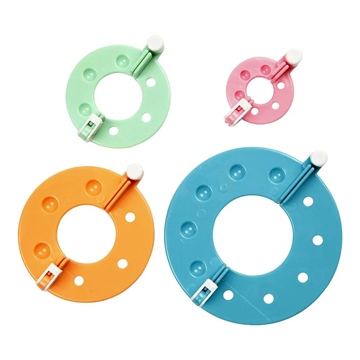 Kätevä pompomientekolaite, jolla teet 4 eri kokoista pompomia. Ohjeet tulevat pakkauksen mukana.