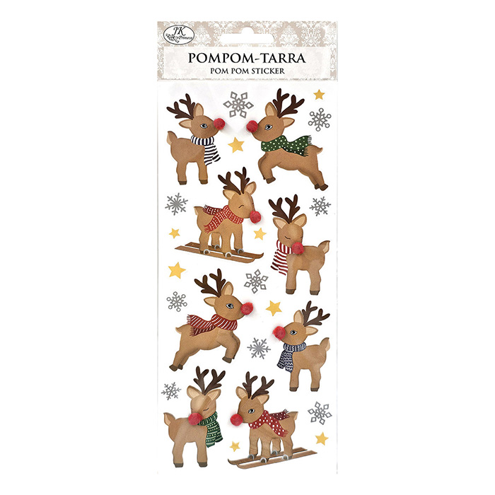Hauskat pompom-tarrat esimerkiksi joulukorttiaskarteluun. Arkin koko noin 10x23cm. Pakkauksessa 1 arkki.