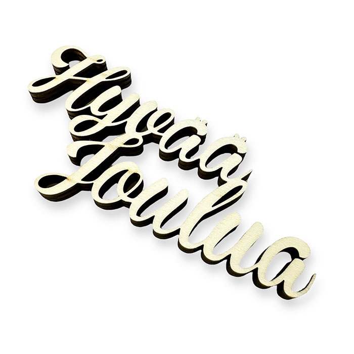 Puinen Hyvää Joulua teksti koristeeksi esimerkiksi kransseihin ja asetelmiin. Tekstin koko 6x12cm ja paksuus 7mm. Pakkausessa 1 kpl.