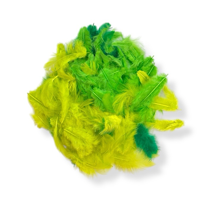 Höyhenlajitelma esimerkiksi pääsiäisaskarteluun. Höyhenten koot 3-10cm. Pakkauksessa 10 grammaa höyheniä.