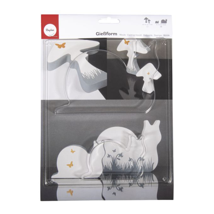 Kirkas muovimuotti askarteluun. Muotilla voit valaa hauskoja etana koristeita   esimerkiksi kipsillä tai betonilla ja koristella sen haluamallasi tavalla vaikka maalaten. Muottien koot: 9,5×6,6cm ja 15,5x11cm.