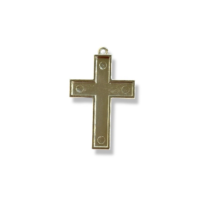 Metallinen risti riipuspohja, jonka voi koristella esimerkiksi pienillä mosaiikkipaloilla. Ristin koko noin 22x43mm ja paksuus noin 3mm.