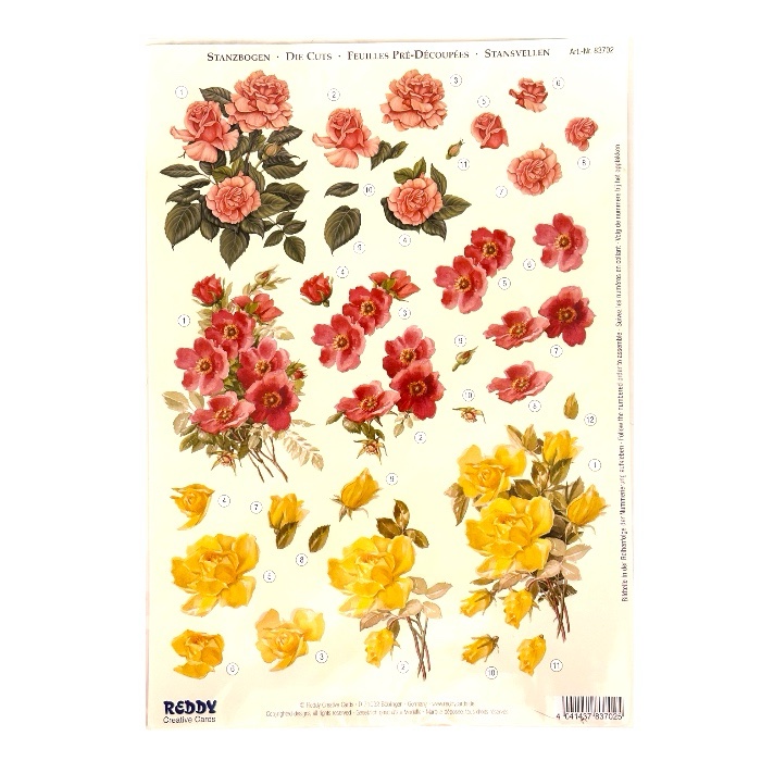3D-kuva-arkki, jonka kuviot on jo valmiiksi leikattu. Irrottele taustasta ja koristele kortit upeilla kuvioilla! Pakkaus sisältää yhden arkin kuvioita.