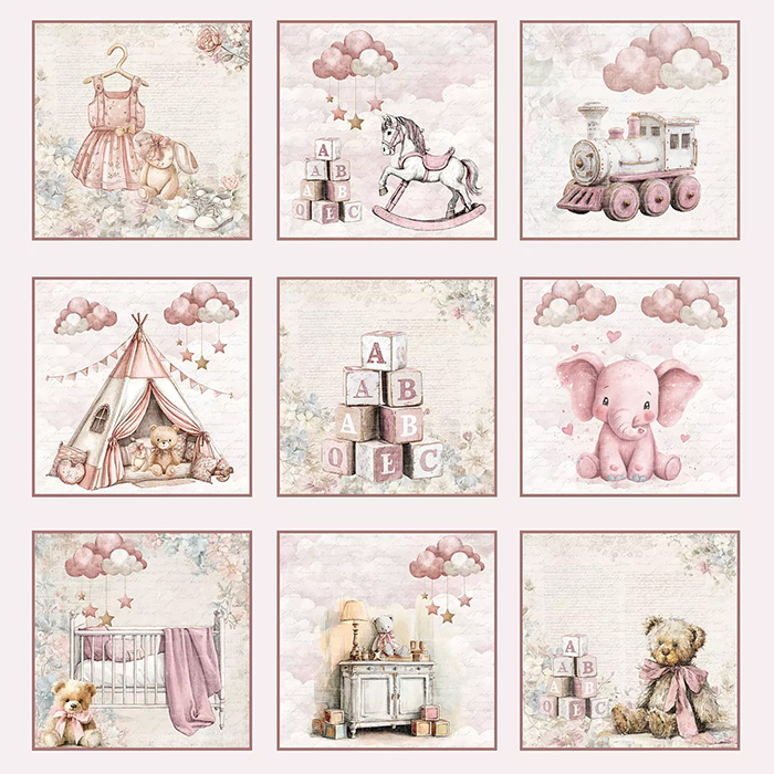 Reprint Skräppipaperi 30x30cm, RP0728 Pink Girl tag