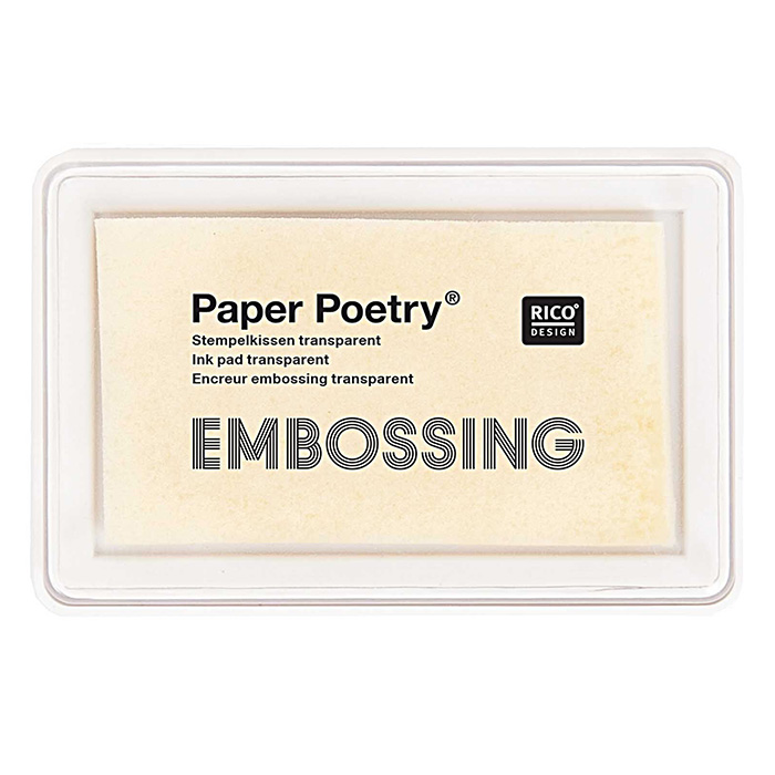 Kirkas Embossing mustetyyny, jonka koko on noin 9x6cm.