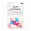 Ihana värikäs rannekorusetti, jossa tulee yhteensä 28 kpl erilaisia muovihelmiä, sekä 30cm joustavaa korulankaa.