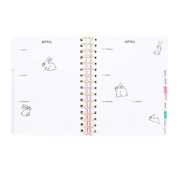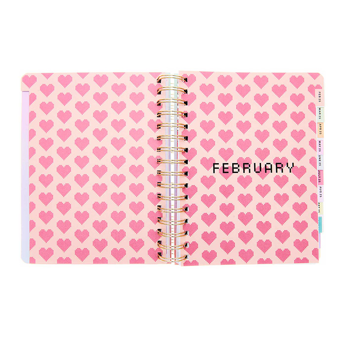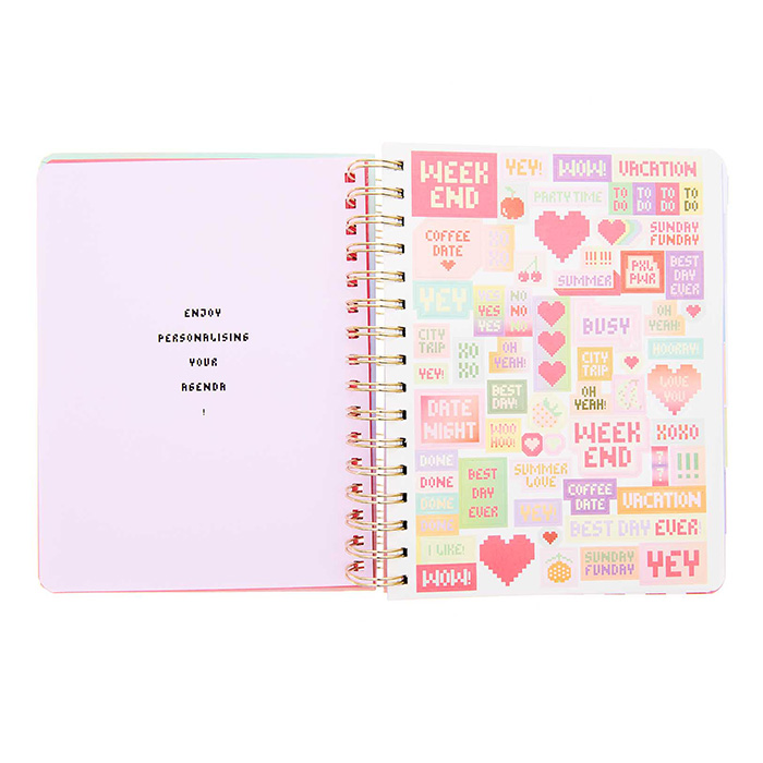 Rico Design kalenteri 2024-2025. Kalenterissa mukana hauskoja tarroja, syntymäpäivä muistisivu, muistiinpanosivuja takana ja kalenterisivut alkaen elokuusta 2024 vuoden 2025 joulukuun loppuun saakka.
