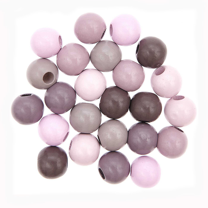 Rico Designin puupallolajitelma esimerkiksi makrameetöihin ja muuhun askarteluun. Pakkauksessa 6 eri värisiä palloja, yhteensä 24kpl. Pallojen halkaisija noin 25mm. Aukon koko noin 9mm.