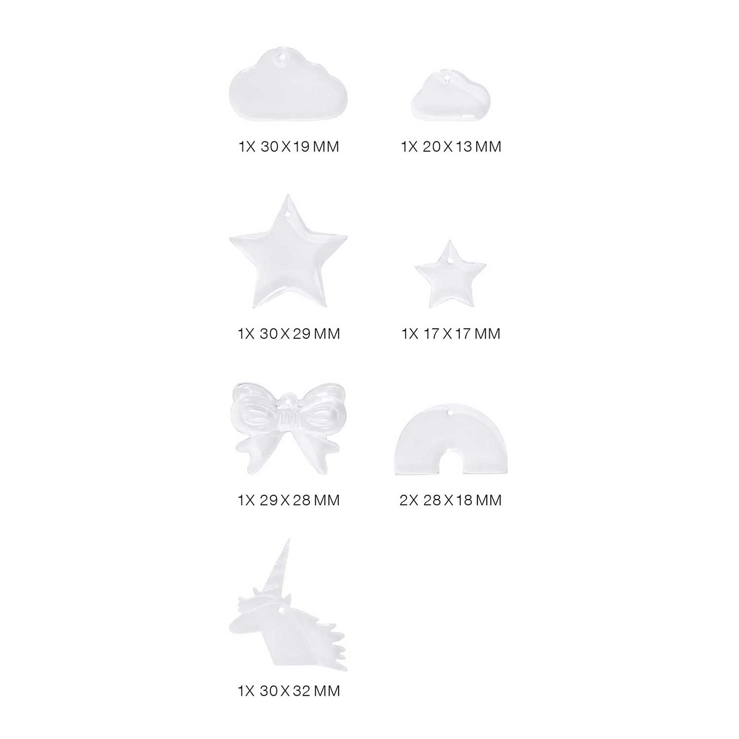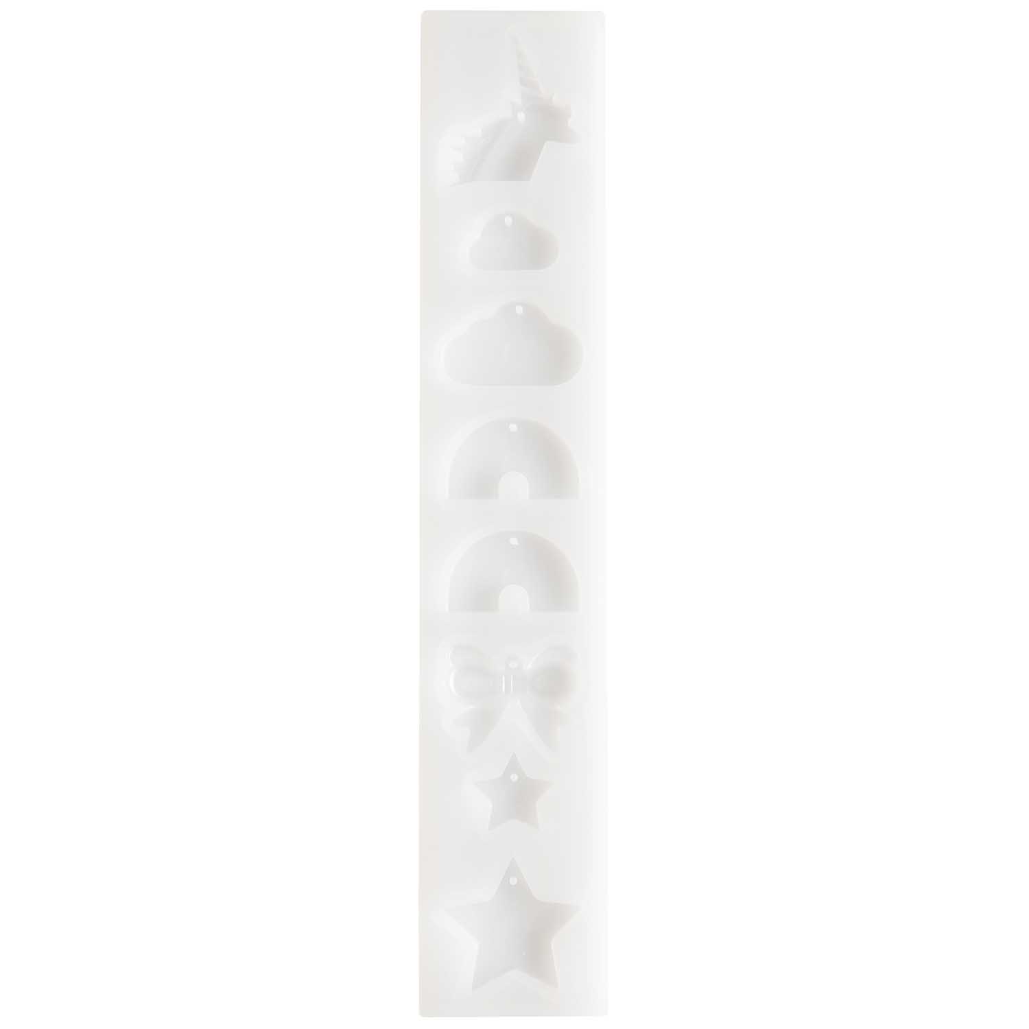 Rico Design kirkas silikonimuotti esimerkiksi hartsikoruaskarteluun. Muotissa 7 erilaista riipuskuviota.