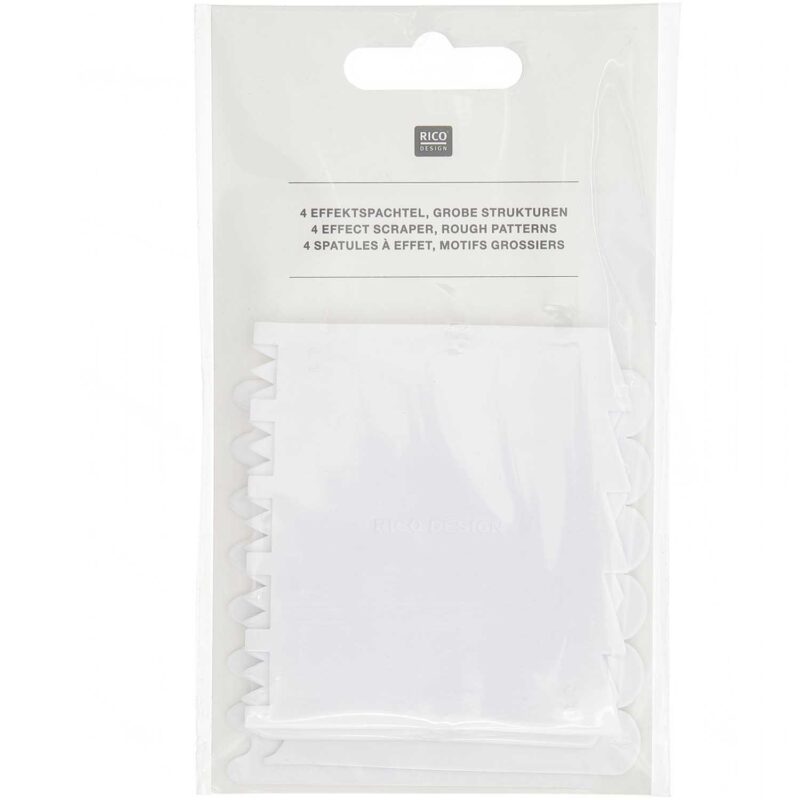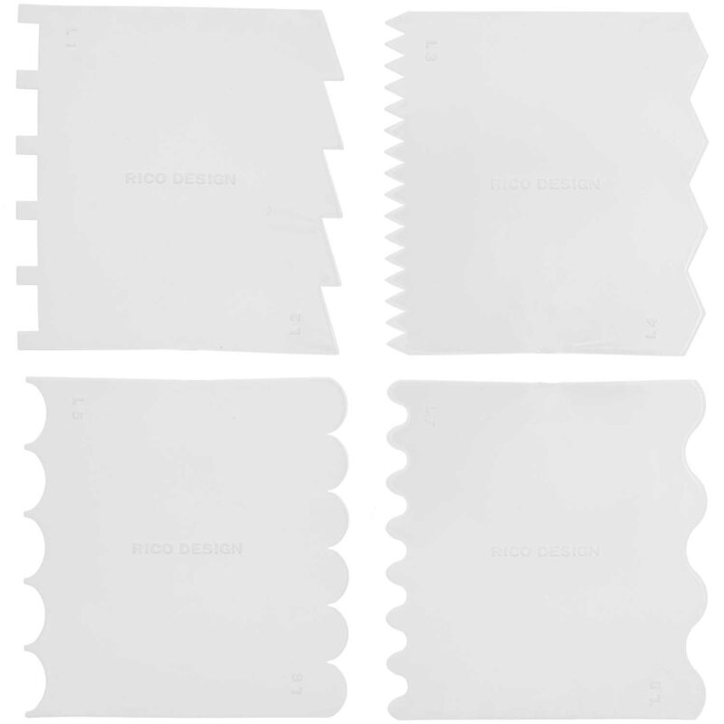 Ricon kätevät työkalut, jolla voit tehdä erilaisia kolmiuloitteisia efektejä esim. maalauksiin tai erilaisten maalauspastoihin (esim. modeling paste). Paketti sisältää 4kpl työkaluja, joissa kaikissa on 2 erimuotoista efektireunaa.