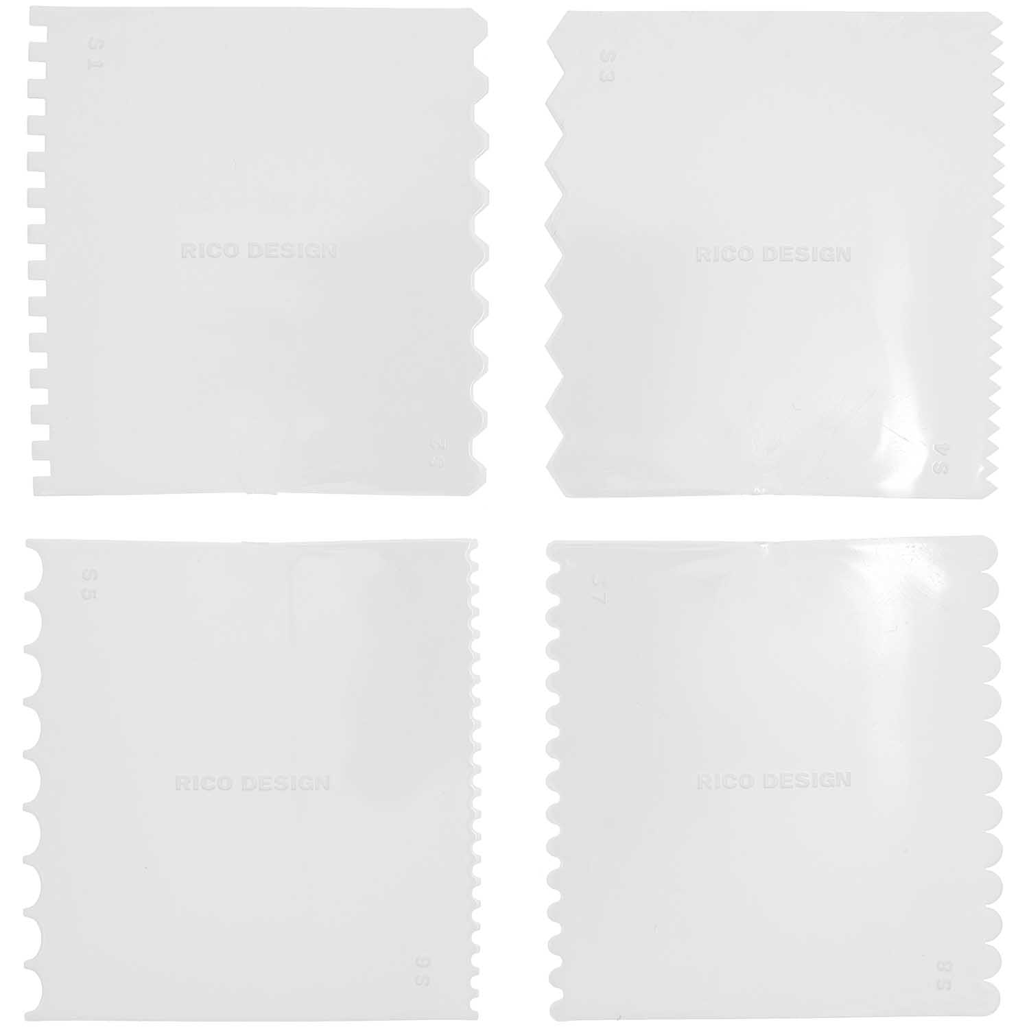 Ricon kätevät työkalut, jolla voit tehdä erilaisia kolmiuloitteisia efektejä esim. maalauksiin tai erilaisten maalauspastoihin (esim. modeling paste). Paketti sisältää 4kpl työkaluja, joissa kaikissa on 2 erimuotoista efektireunaa.