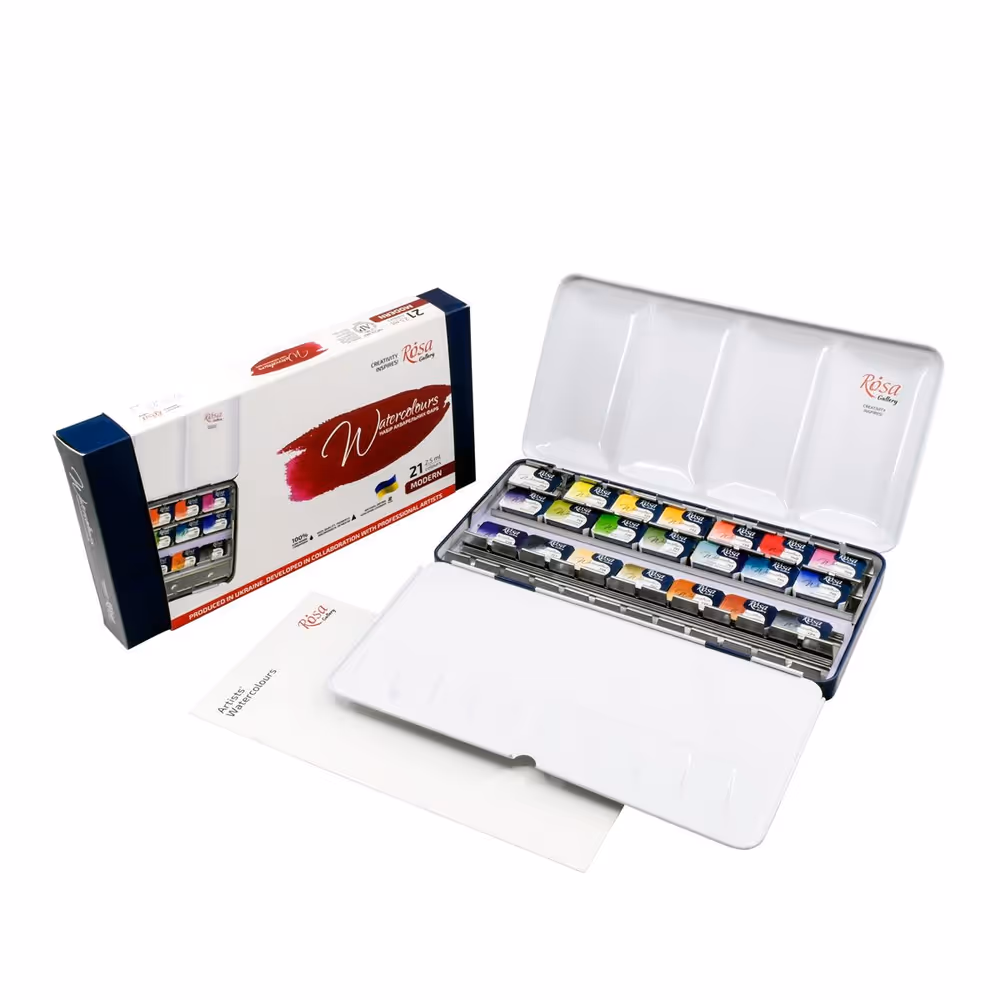 Laadukkaat ukrainalaiset Rosa Galleryn akvarellivärit on loistava valinta sinulle, joka arvostat laatua! Värit on valmistettu luonnonmukaisesta arabikumista sekä hienojakoisista, korkealaatuisista pigmenteistä. Rosa Gallery akvarellivärit sopivat niin akvarellitaiteilijoille, kuvittajille ja harrastajille.