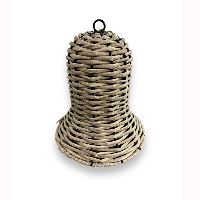 Rottinkikellokoriste jouluiseen koristeluun. Kellon korkeus 20cm, lenkin kanssa noin 21cm. Halkaisijia noin 18cm. Kellon päässä ripustuslenkki, josta sen saa roikkumaan.