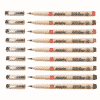 Pigma Brush -sarja sisältää 9 pehmeää sivellinkärkistä kynää, joita voit käyttää mm. piirtämiseen, kirjoittamiseen, kalligrafiaan ja muuhun taiteiluun. Joustava pehmeä sivellinkärki mahdollistaa vaihtelevan viivanpaksuuden. Pigma erikoismuste ei vuoda paperin läpi, eikä leviä herkästi. Muste on vedenkestävää, haalistumatonta, nopeasti kuivuvaa ja pH-neutraalia. Setti säsältää värit: Oranssi (5), ruskea (12), punainen (19), 21, violetti (24), vihreä (29), sininen (36), musta (49), tumma seepia (117).