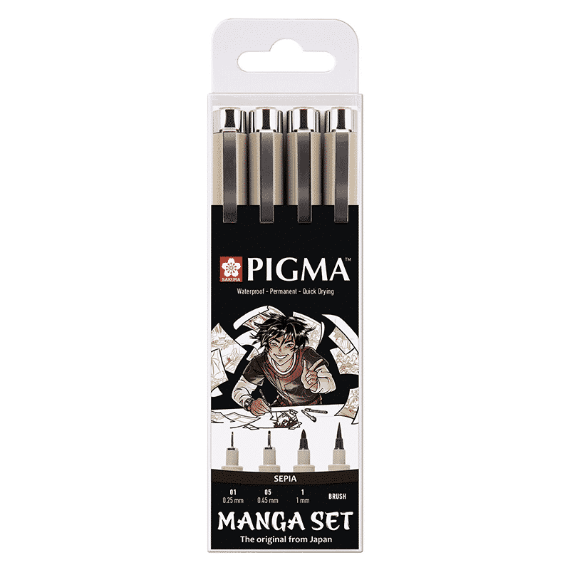 Pigma Micron kynissä on valon- ja kosteudenkestävä pigmenttipohjainen muste. Kynillä voi piirtää ja kirjoittaa lähes kaikille paperi- ja huokoisille pinnoille, myös kuultopaperille. Pigma erikoismuste ei vuoda paperin läpi, eikä leviä herkästi. Muste on vedenkestävää, haalistumatonta, nopeasti kuivuvaa ja pH-neutraalia. Kynät ovat suosittuja mm. sarjakuvapiirtäjien, taiteilijoiden, kuvittajien, suunnittelijoiden, sekä arkkitehtien käytössä. Settiin kuuluu seepian väriset kynät: 01 (0,25mm), 05 (0,45 mm), 1 (1mm), Brush (sivellinkärkinen tussi)