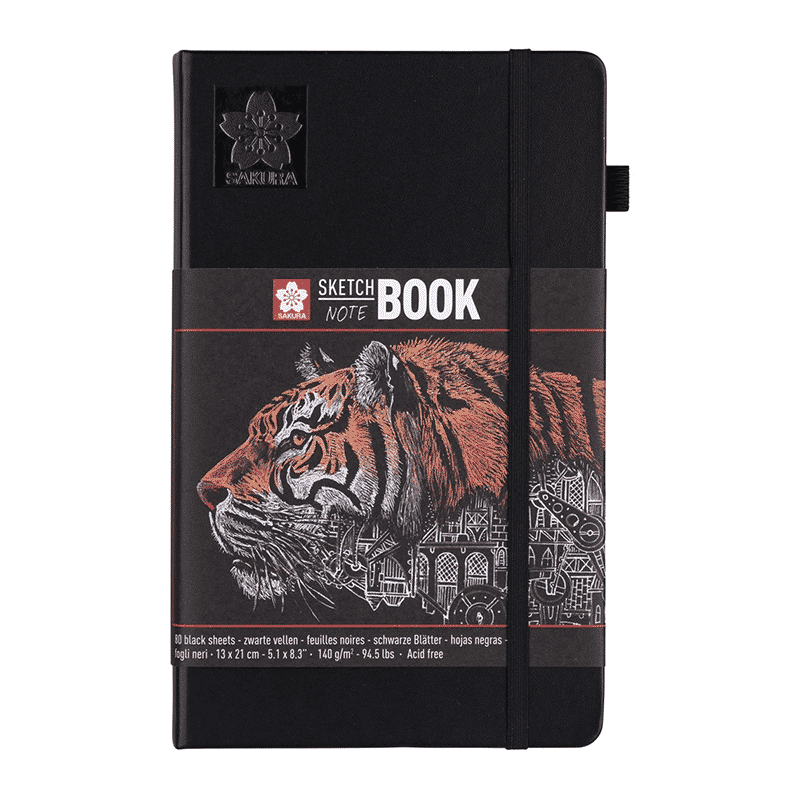 Sakuran kovakantiset luonnoskirjat sopivat erinomaisesti luonnosteluun, piirtämiseen ja kirjoittamiseen monenlaisilla tekniikoilla kuten lyijykynillä, värikynillä, pastelleilla, hiilellä, tusseilla, vesiväritusseilla ja geelikynillä. Kirjan sivussa on kynäteline ja takakannessa laajennettava kirjekuori luonnosten ja muistiinpanojen säilyttämistä varten. Joustava sulkunauha kirjan ympärillä varmistaa, että kirjasi pysyy siististi suljettuna ja kompaktina. Kirjassa on 80 mustaa arkkia 140/gm2 hapotonta paperia. Kirjan koko on 13x21cm.