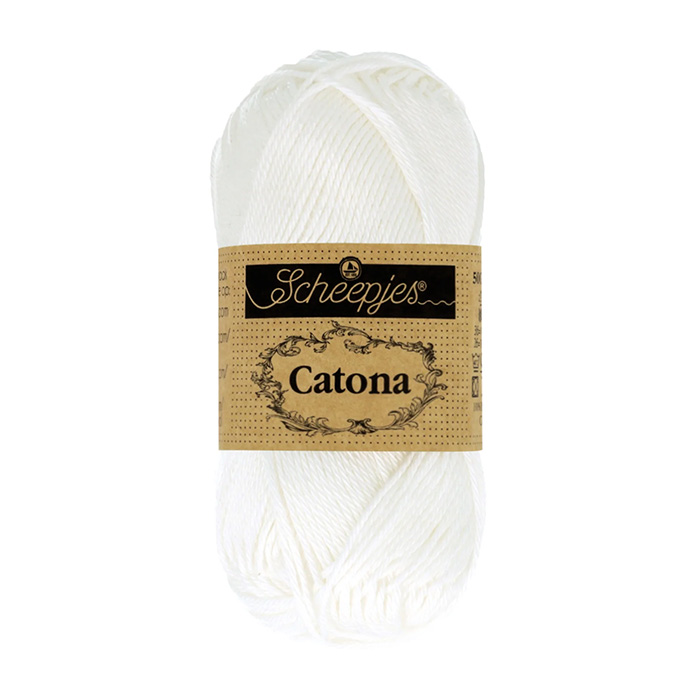Scheepjes Catona lanka on 100% puuvillaa ja se sopii hyvin esimerkiksi virkkaukseen ja muihin käsitöihin. Lanka sopii hyvin myös herkkäihoisille ja lapsille, joten siitä on hyvä virkata esimerkiksi vauvaleluja ja asusteita. Kerässä on 50g/ 125 metriä lankaa. Koukkusuositus 2.5-3.5 mm.