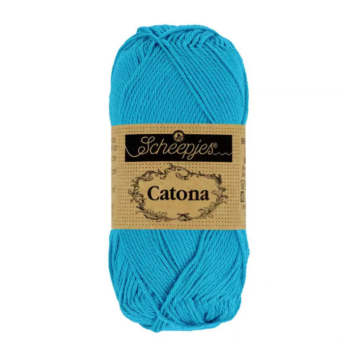 Scheepjes Catona lanka on 100% puuvillaa ja se sopii hyvin esimerkiksi virkkaukseen ja muihin käsitöihin. Lanka sopii hyvin myös herkkäihoisille ja lapsille, joten siitä on hyvä virkata esimerkiksi vauvaleluja ja asusteita. Kerässä on 50g/ 125 metriä lankaa. Koukkusuositus 2.5-3.5 mm.