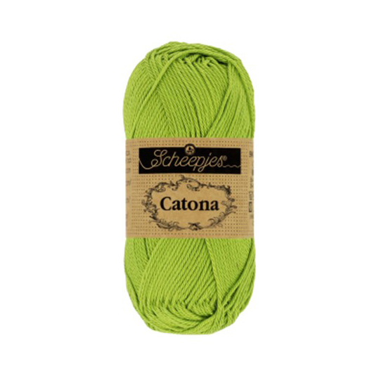 Scheepjes Catona lanka on 100% puuvillaa ja se sopii hyvin esimerkiksi virkkaukseen ja muihin käsitöihin. Lanka sopii hyvin myös herkkäihoisille ja lapsille, joten siitä on hyvä virkata esimerkiksi vauvaleluja ja asusteita. Kerässä on 50g/ 125 metriä lankaa. Koukkusuositus 2.5-3.5 mm.