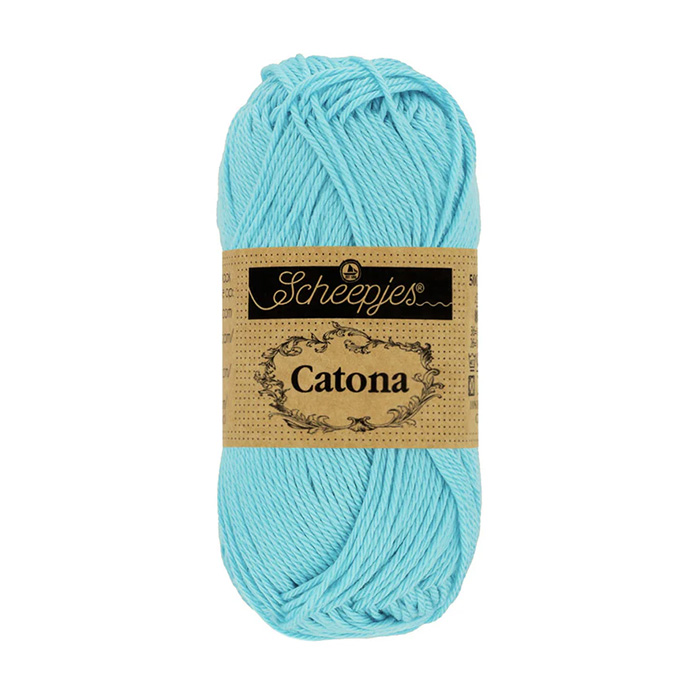 Scheepjes Catona lanka on 100% puuvillaa ja se sopii hyvin esimerkiksi virkkaukseen ja muihin käsitöihin. Lanka sopii hyvin myös herkkäihoisille ja lapsille, joten siitä on hyvä virkata esimerkiksi vauvaleluja ja asusteita. Kerässä on 50g/ 125 metriä lankaa. Koukkusuositus 2.5-3.5 mm.