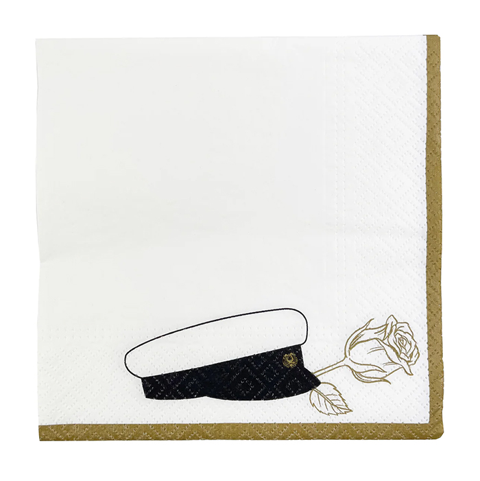 Tyylikkäät valkoiset servetit ylioppilaslakin kuvalla. Servetin aukaistu koko 33x33cm. Pakkauksessa 20kpl.