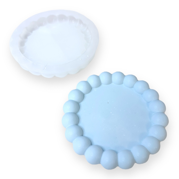 Upea uutuus! Kaunis tarjotin esimerkiksi sisustukseen. Voit valaa muottiin erilaisilla massoilla, kuten vaikkapa Jesmonitella, EKO hartsilla tai epoksihartsilla. Valmiin tuotoksen halkaisija on noin 11,3cm, korkeus 1,8cm.