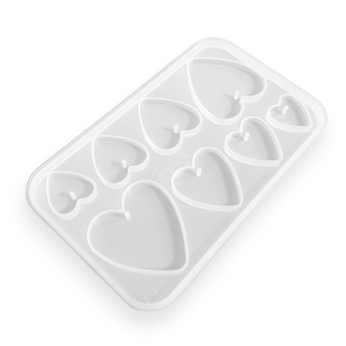 Upea silikonimuotti esimerkiksi UV Hartsilla tehtyihin korvakoruihin, riipuksiin tai avaimenperiin. Muottilevyn koko 14×8,5cm. Muotin syvyys 4mm. Muotin isoimman sydämen leveys on 4cm, pienimmän 2cm.